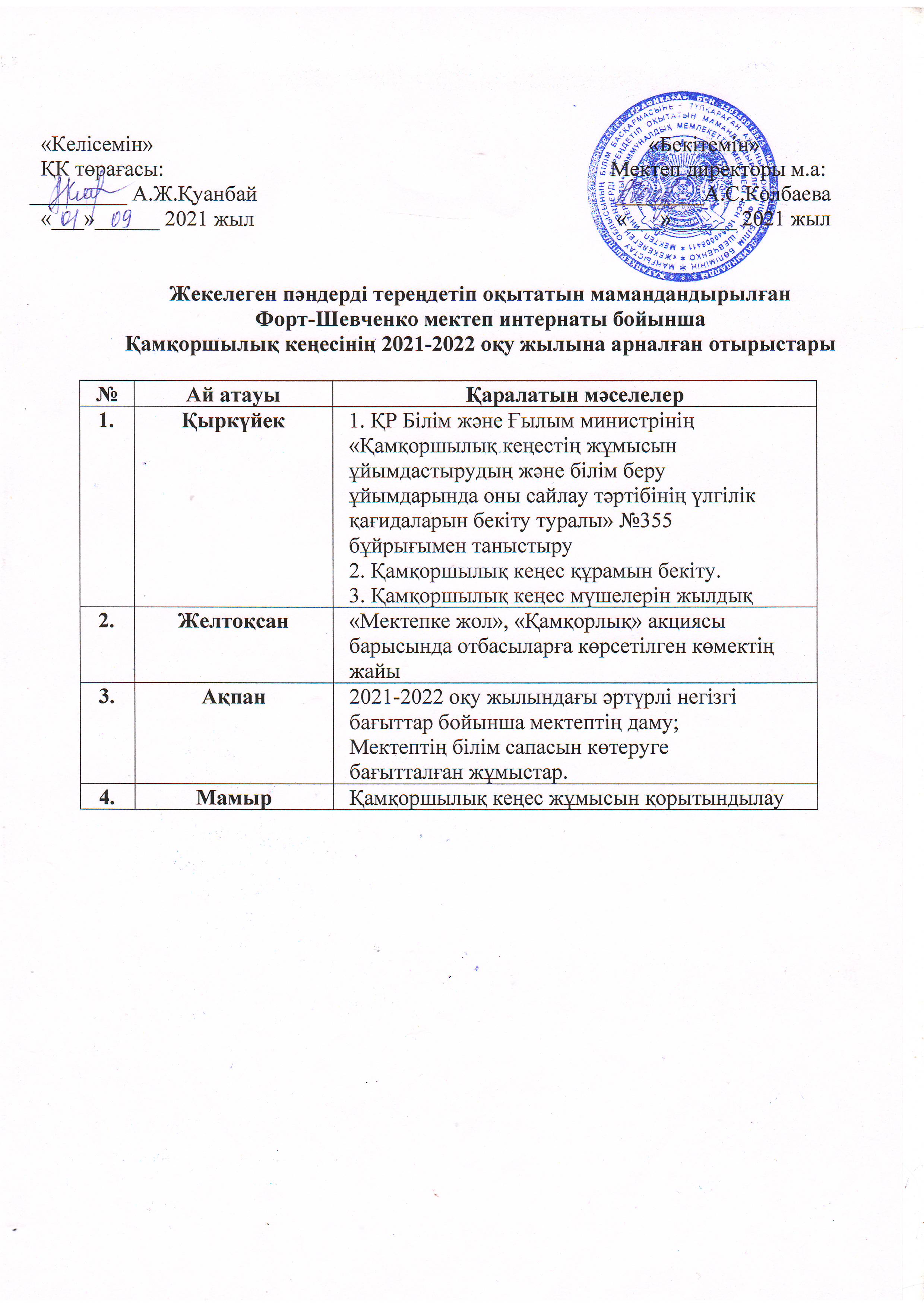 Қамқоршылық кенесінің 2021-2022 оқу жылына арналған отырыстары