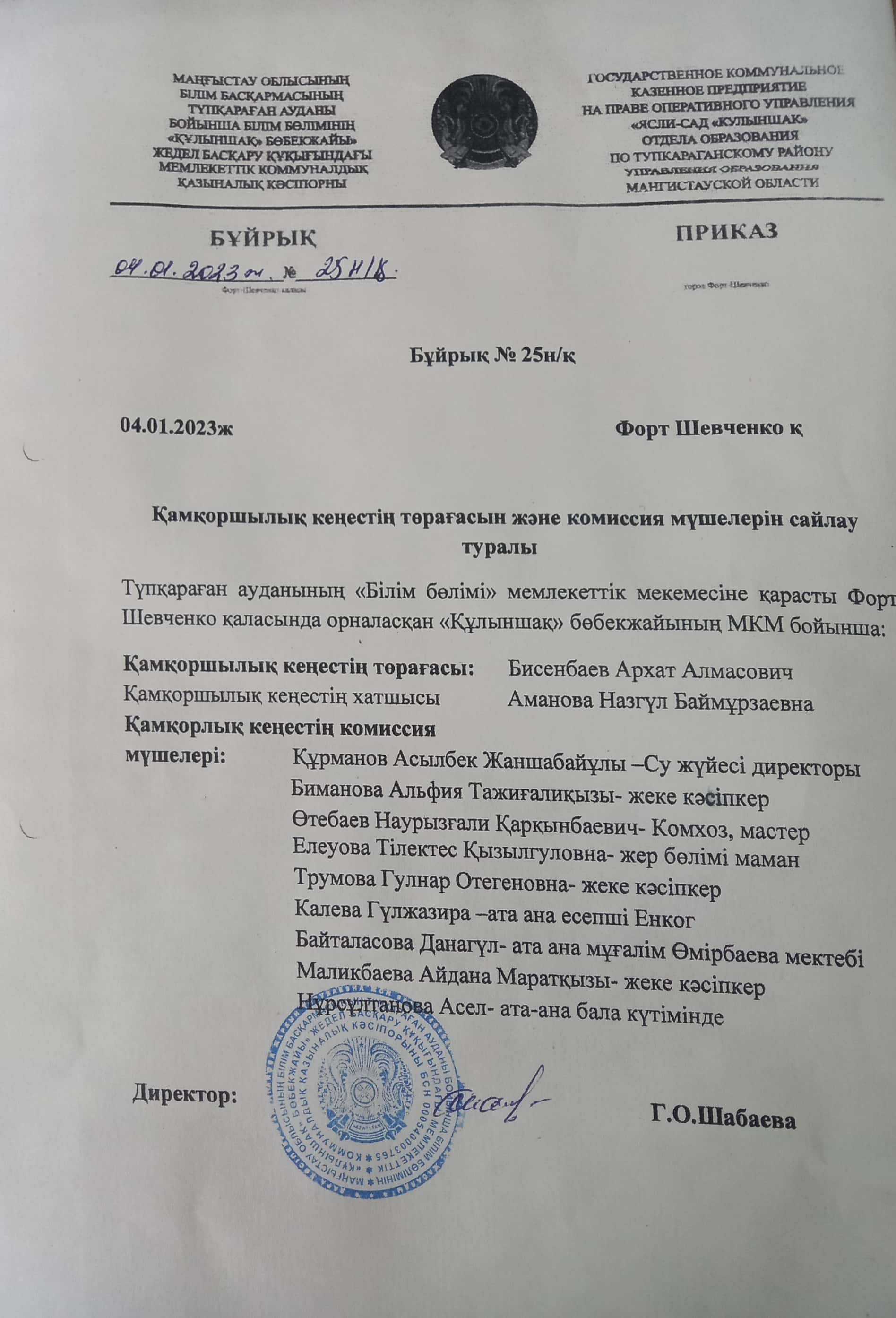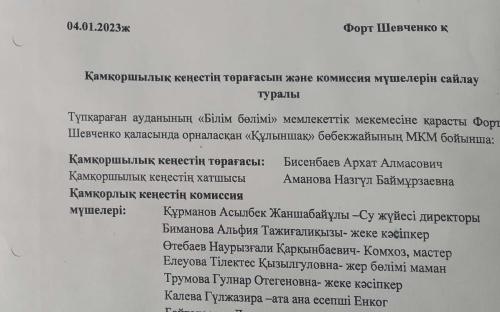 Қамқоршылық кеңестің төрағасын және комиссия мүшелерін сайлау туралы